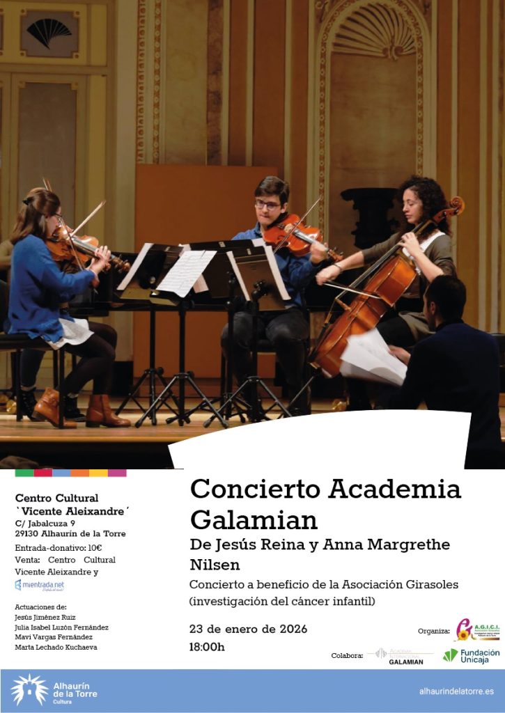 La prestigiosa escuela Galamian de Malaga se enorgullece en presentar un Concierto Solidario de Violin, interpretado por sus talentosos alumnos y alumnas, con el propósito de apoyar a la investigación del Cáncer Infantil.