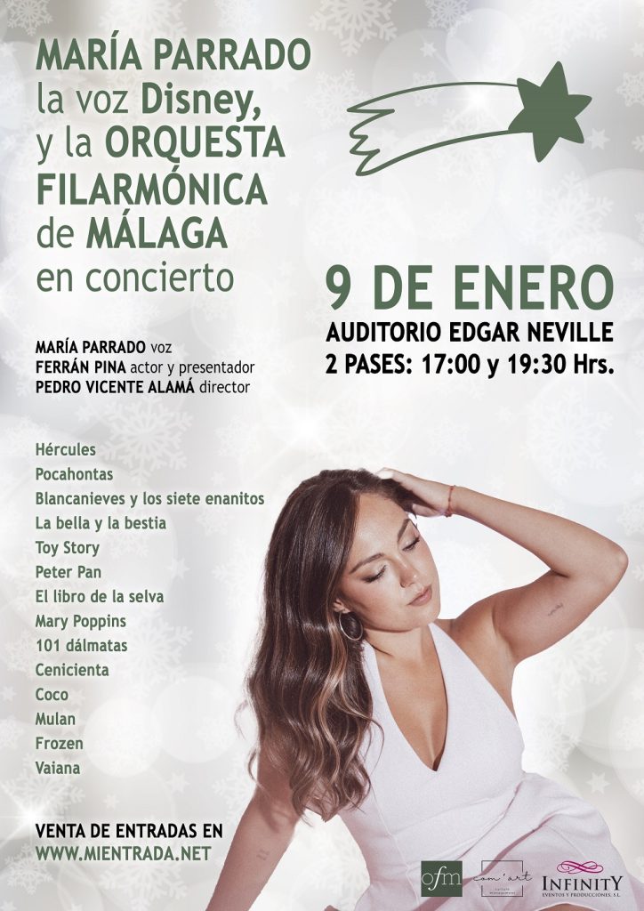 María Parrado y la Orquesta Filarmónica de Málaga: La Magia de Disney en Concierto. Vive una experiencia única que despertará tu lado más mágico y nostálgico. La inconfundible voz de María Parrado, acompañada por la Orquesta Filarmónica de Málaga bajo la dirección de Pedro Vicente Alamá, te transportará al corazón de las películas Disney que marcaron tu infancia y siguen emocionando a todas las generaciones.