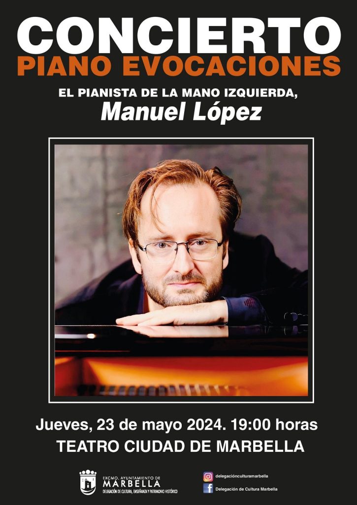 El pianista que superó un ictus y aprendió a tocar solo con la mano izquierda. Manuel es pianista, violonchelista y compositor internacional. La crítica y medios nacionales e internacionales le avalan con numerosos recitales tanto a nivel nacional como internacional. ¡Su música no tiene límites! Un pianista versátil capaz de tocar cualquier repertorio abarcando todas las épocas y periodos de la música clásica y neoclásicos clásica del momento ¡solo con la mano izquierda! Disfruta de su gira del 2023, desde Bach a Morricone, los clásicos de toda la vida Bach, Chopin, Granados, Falla, Brahms, Liszt, Rachmaninov, Scriabin.