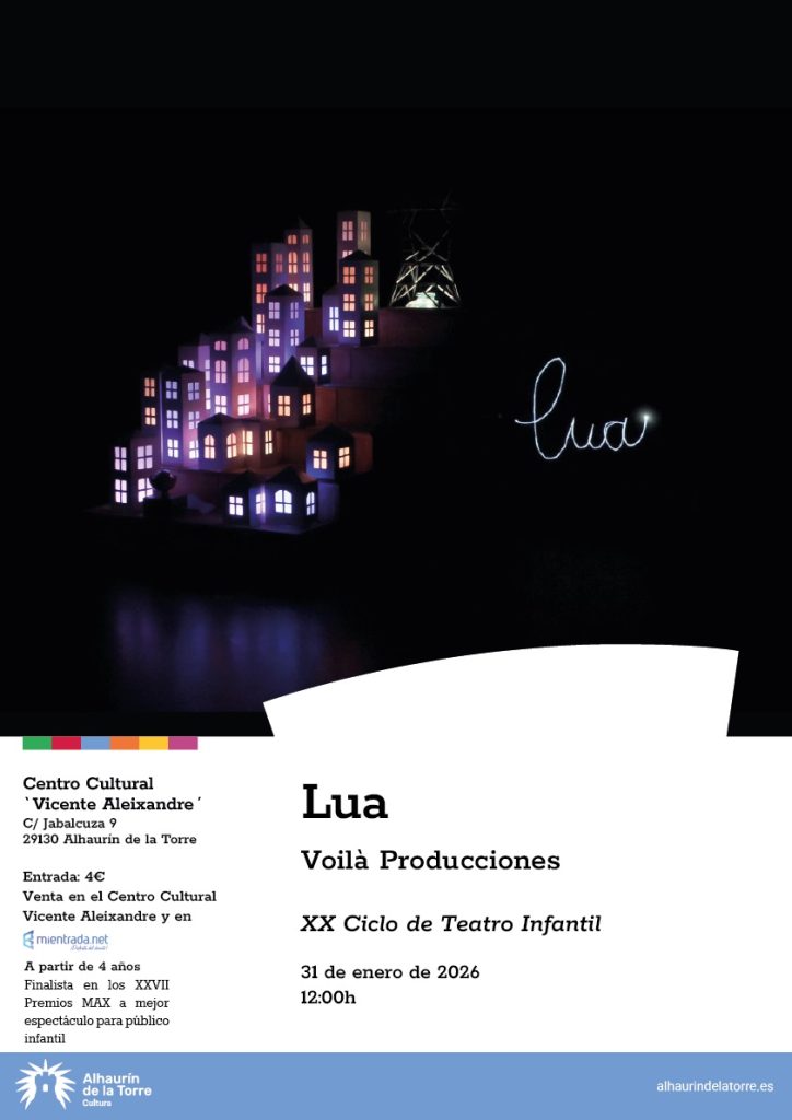 Lua es un espectáculo familiar que habla sobre el miedo a lo desconocido. Una historia sobre las luces y las sombras, donde la propia luz es una protagonista más. Sobre una simple escalera de madera de un antiguo edificio, la “domadora de versos” cuenta sus recuerdos infantiles. En aquellos escalones jugaba a crear mundos increíbles, como el de la ciudad de los “Sin sombra”. La escalera se abre, gira y se transforma, siguiendo los pasos de Lua, una pequeña lámpara dispuesta a enfrentarse a sus miedos y conocer la belleza que esconde la oscuridad. Un poema dramatizado, una delicada instalación artística, pero también una sofisticada pieza de teatro.
